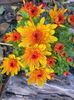 Lângă măceș, tufa cu cele 2 și Margareta galbenă, cu Margareta portocalie în stanga